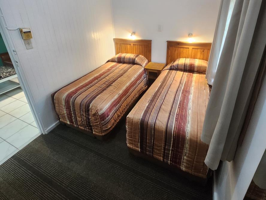 Three Bedroom Chalet. Main Bedroom with single beds. Second and third Bedrooms have one bunk bed in each Bedroom. Open plan Living-room and kitchen: stove, fridge, microwave, DSTV (selection of channels). Bathroom with wheelchair accessible shower and toilet (no bath). Patio area with braai. Open parking. Maximum 6 Persons.
